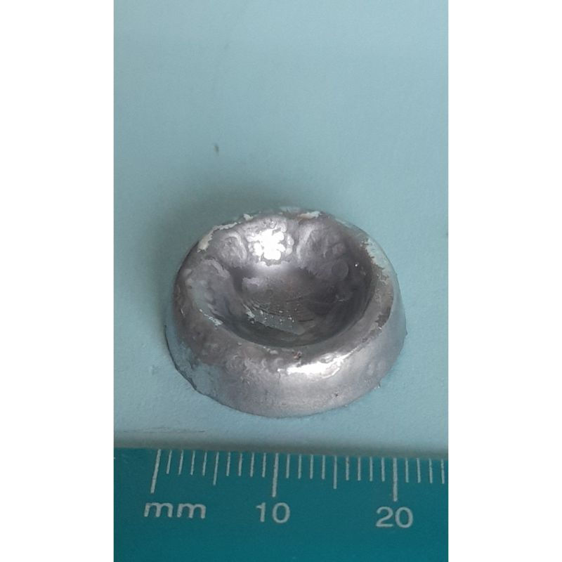 Old/battered appearing large dog bowl, silver coloured, resin