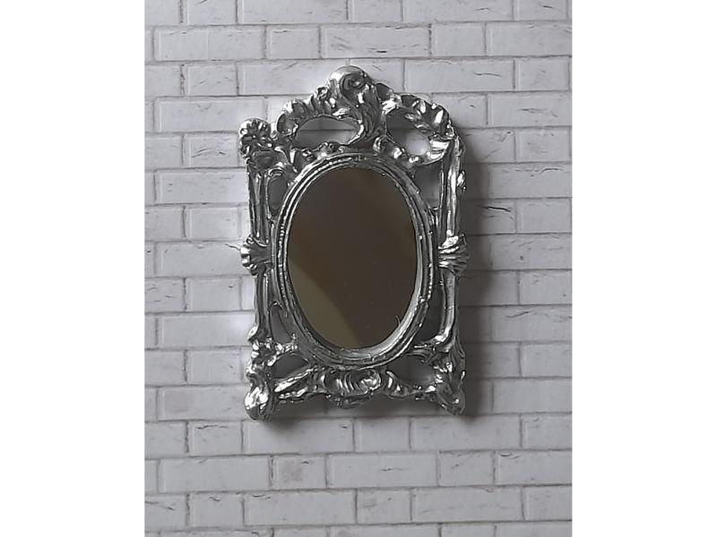 Medium silver-coloured rectangular mirror with scroll design, resin